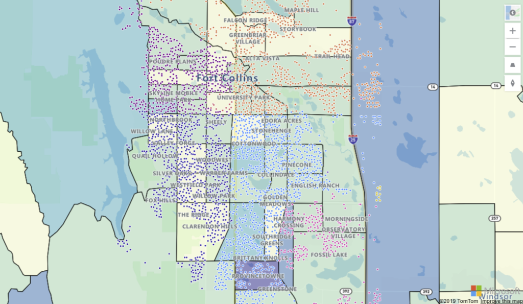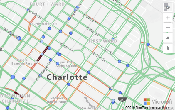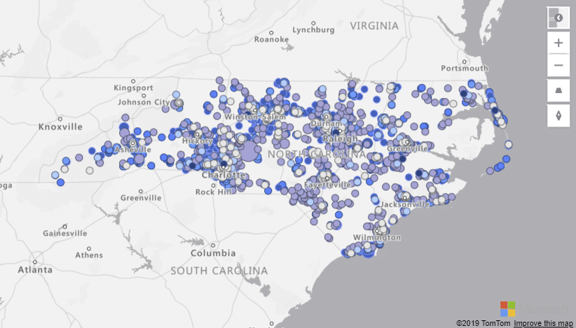 שלישית הרעיון במפה שאפשר להלביש עליה שכבות. בדוגמה שלפנינו עלה קובץ מסוג GeoJSON המכיל נתוני מיקום מותאמים אישית. ניתן להסיק תובנות על פי הקשר שבין צפיפות לערך הנדל"ני.ניתן להשתמש במאפיינים בקובץ GeoJSON להתאמה אישית של סגנון הצורות. בדוגמה שלפנינו